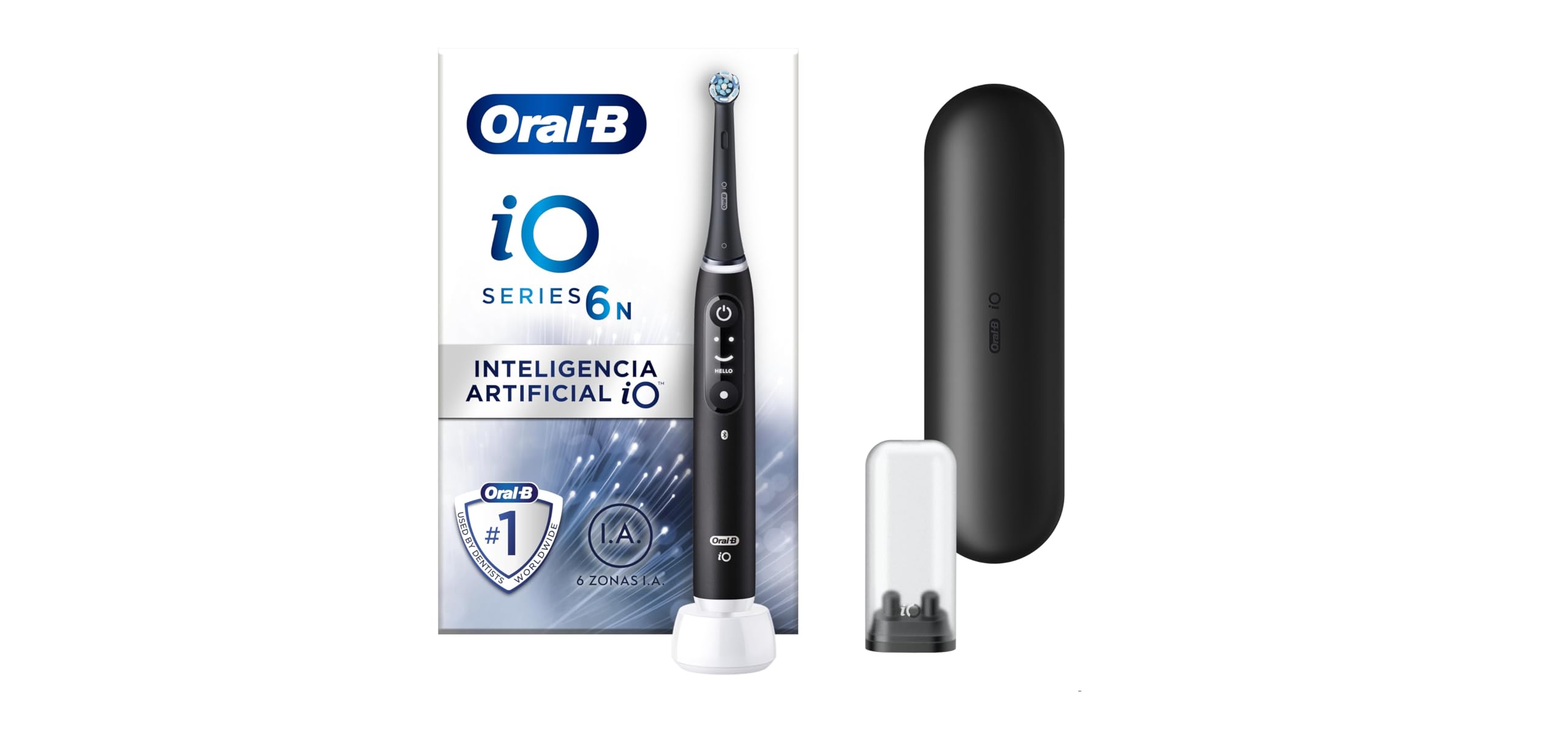 Oral-B iO 6N Cepillo de Dientes Eléctrico con 2 Cabezales y 1 Estuche de Viaje, Diseñado por Braun, Regalos Orginales – Negro