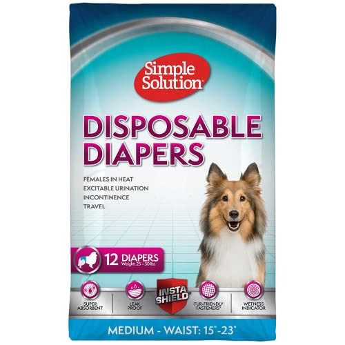 Simple Solution Pañales Desechables para Perros Hembra, Ajuste Super Absorbente a Prueba de Fugas, Indicador de Humedad 12 paquetes