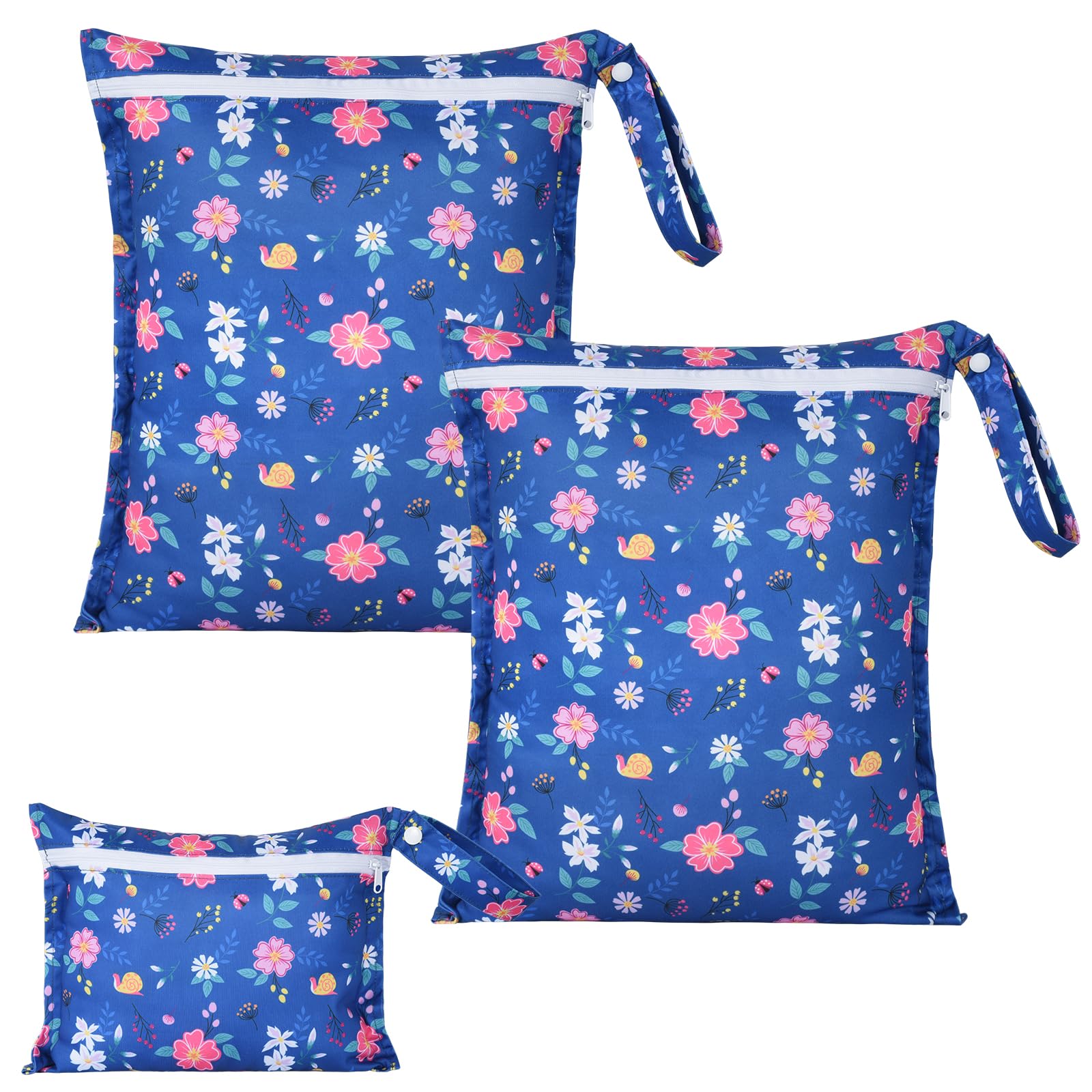 OTraki Bolsa Impermeable para Pañales, 2 PCs Reutilizable Bolsa de Lavandería con Asa, Bolsa Pañales de Tela Organizador para Gimnasio, Traje de Natación, Playa, Piscina, Flor