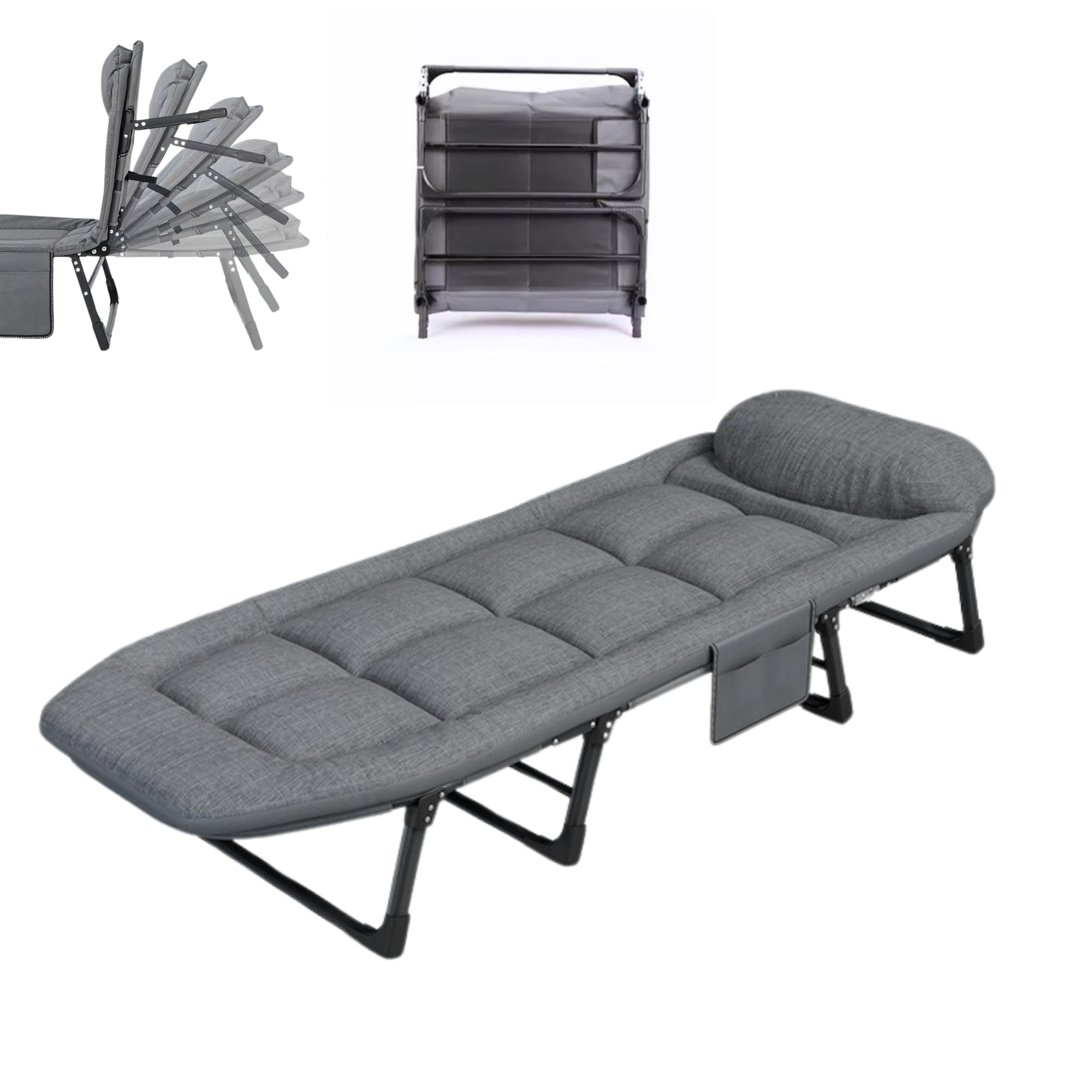 Cama de Camping Acolchada. Cama para Acampar Plegable. Cama de Campo. Cama de Viaje con Almohada, Bolsillo. Algodón y Lino. Acerco al Carbono (200x63cm).