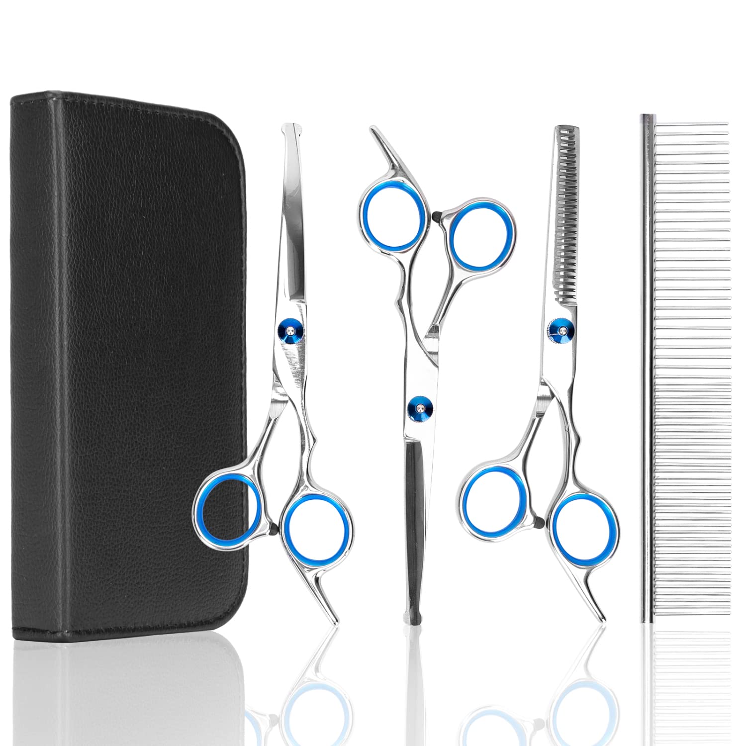 Nobleza Tijeras para Perros, 4 Piezas Tijeras Peluqueria Canina Profesional de Acero Inoxidable, Tijeras para Perros con Puntas Redondas para Aseo Mascotas Bricolaje