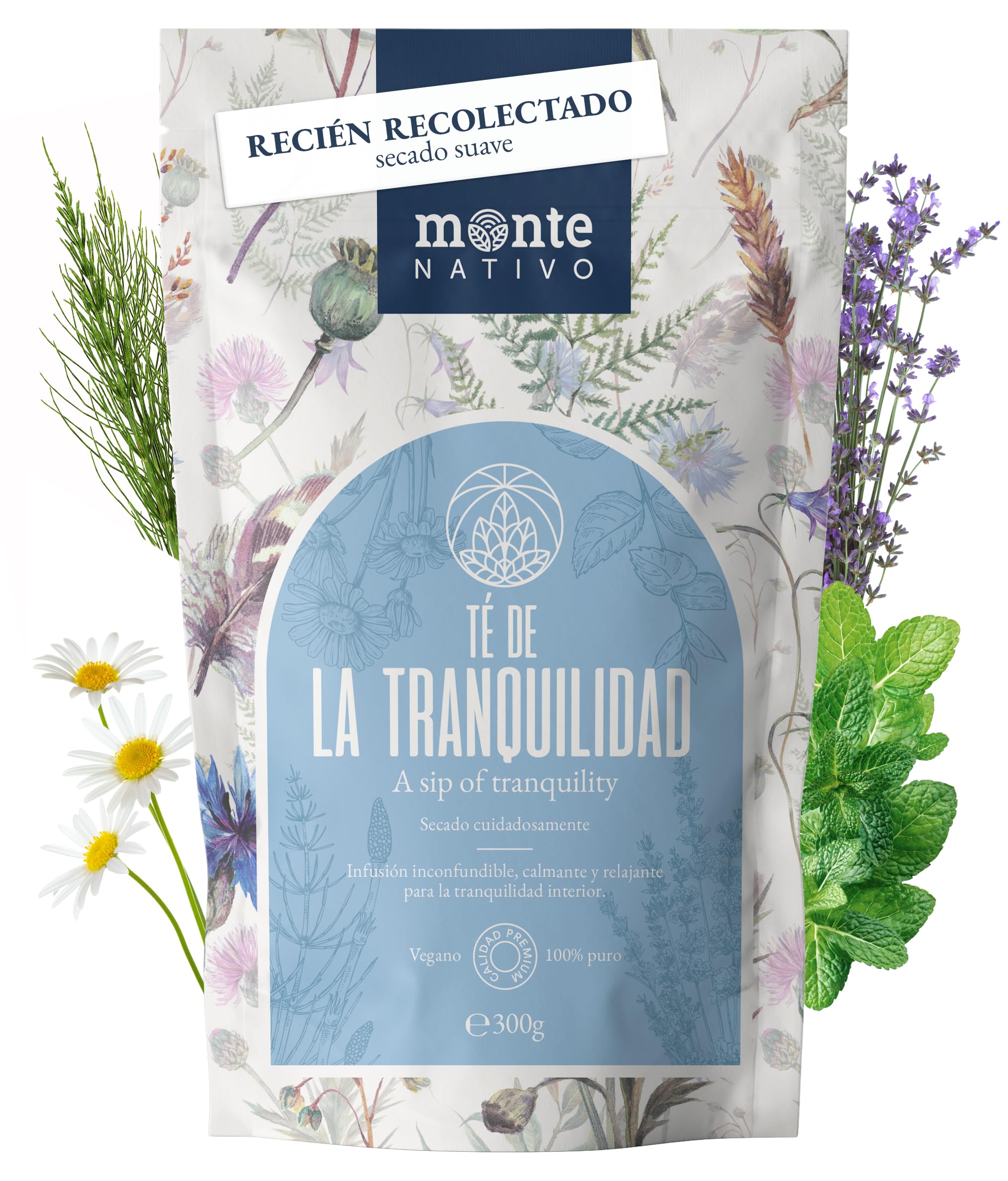 Tu00E9 de tranquilidad (300 g) Monte Nativo | Mezcla de hierbas relajantes – lavanda, menta, cola de caballo, manzanilla | 100% puro tu00E9 para dormir | Para la preparaciu00F3n de infusiones para dormir