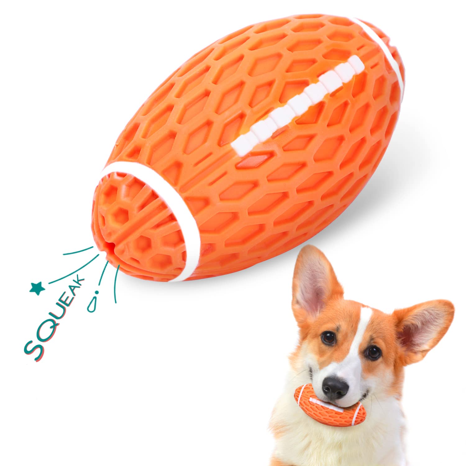 Nobleza Pelota Perros con Sonido, Pelota de Juguete para Perros Interactivo, Squeak Juguetes para Perro Rugby, Pelota Perro Masticar, Pelota Perro Indestructible de Caucho Natural, L10.3*W5.6CM