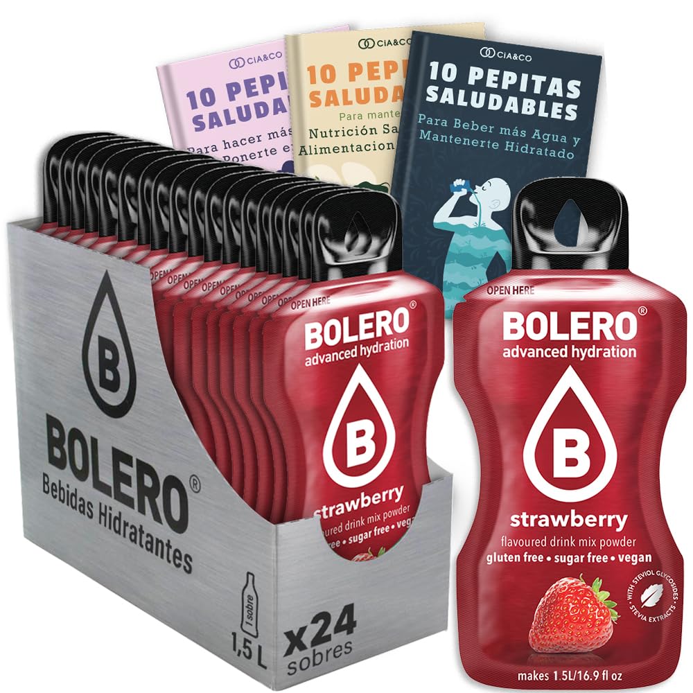 24 x Bebida Bolero FRESA Hidratante Sin Azucar (24×9 grs) + 30 Pepitas Saludables para una vida mu00E1s sana by Cia&Co