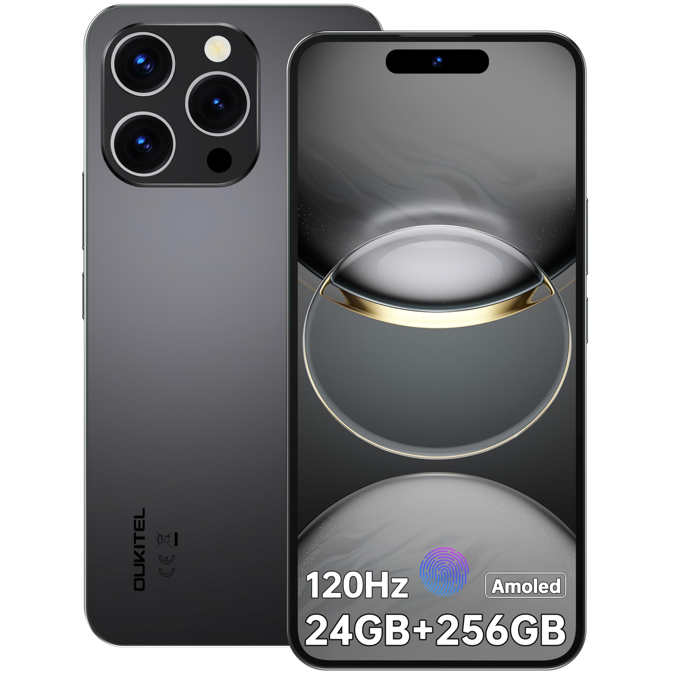 OUKITEL P1 Telefono Movil Android 14, 24GB(8+16)+256GB/2TB Telefonos Moviles Libres, Pantalla AMOLED 6.7″ 120Hz FHD+ Smartphone, 5150mAh Batería, Cámara 50MP+32MP, 4G Dual SIM, Face ID/NFC/GPS, Negro