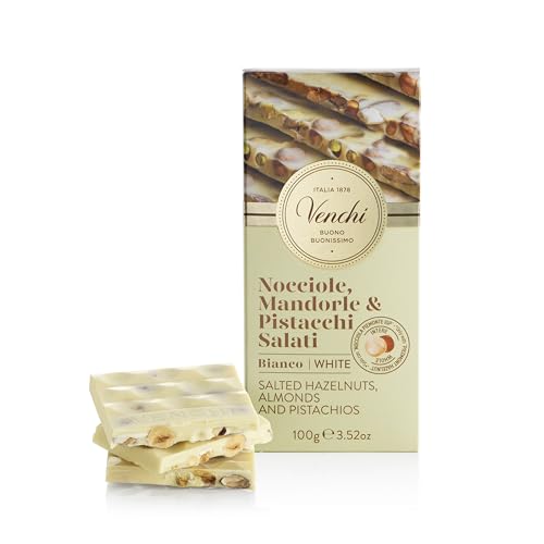 Venchi Tableta de Chocolate Blanco Salado, 100 g – Chocolate Blanco con Avellanas, Pistachos y Almendras Salados – Sin Gluten