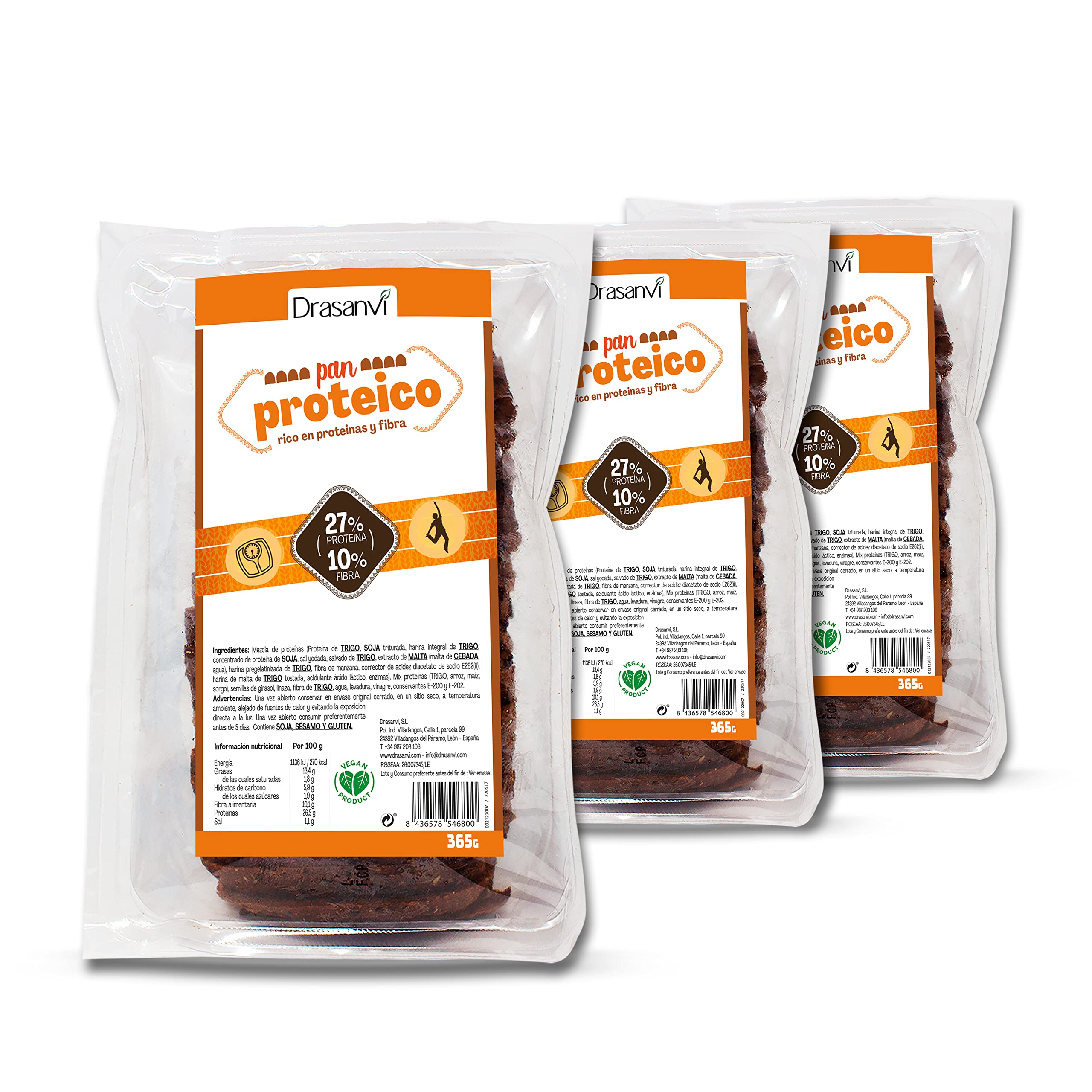 DRASANVI Pack x3 Pan Proteico Bajo en carbohidratos |27% de proteínas y alto contenido en fibra | para dieta low carb y keto | Bajo en azúcares y calorías | Con semillas de girasol y linaza | 365 gr