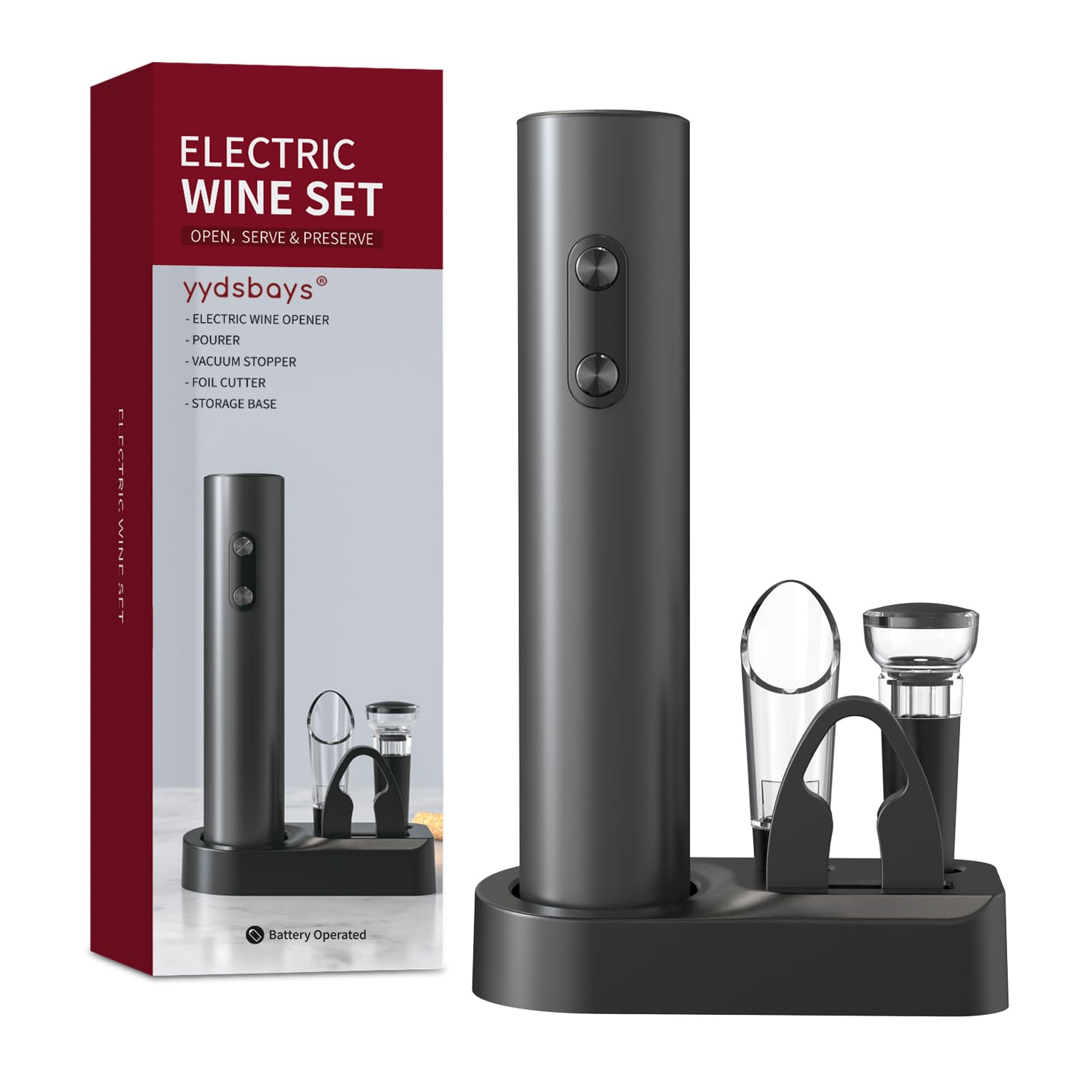 Sacacorchos Eléctrico Abridor de Botellas de Vino Electrico Automático Profesional Abrebotellas para Regalo de Amantes del Vino (Negro, Juego Base, Motorizado a Batería)