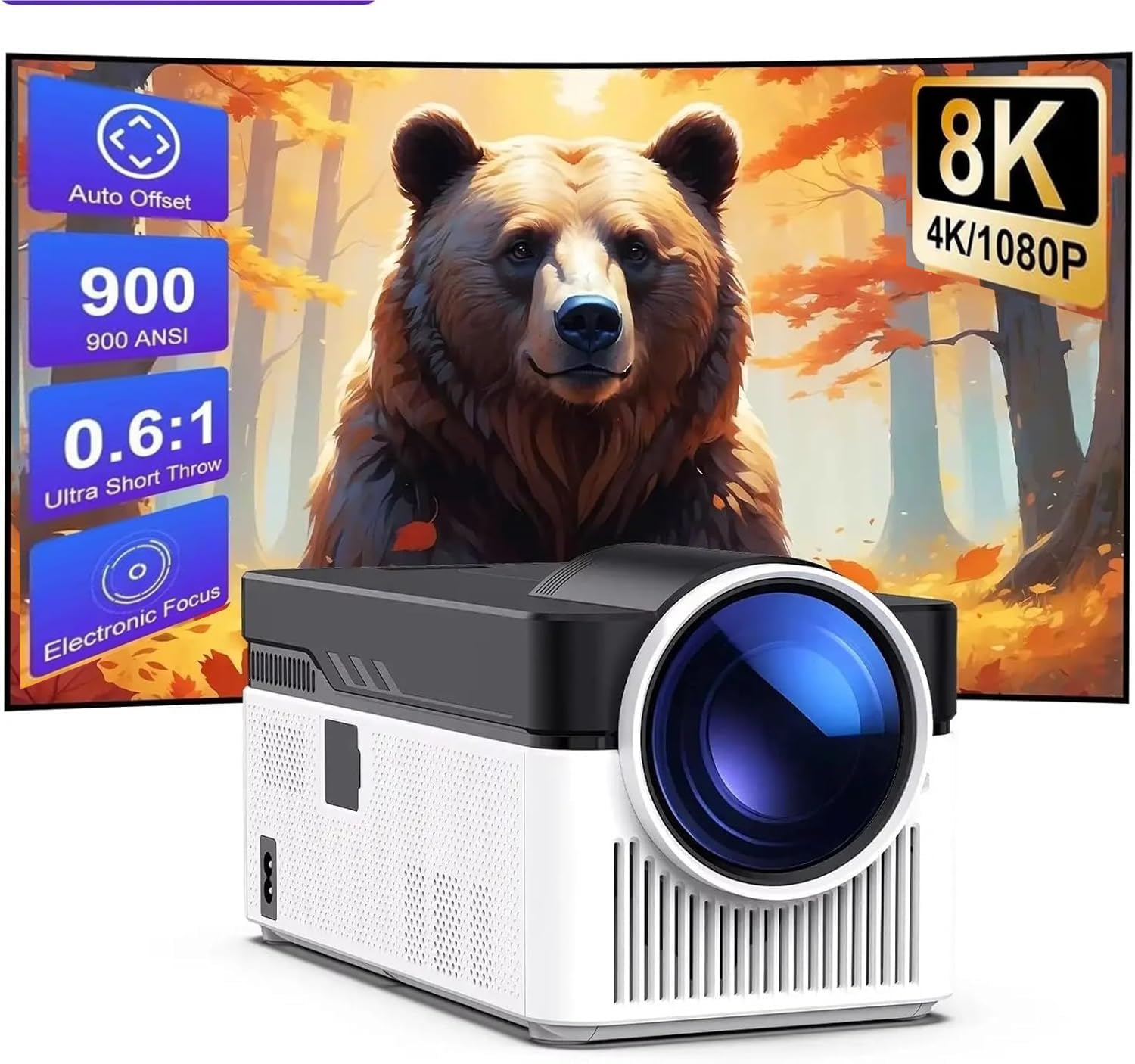 Proyector 4K, Unicview HY-450, Lente Ultra Corta UST, Videoproyector Cine en casa con Android 11, 900 ANSI Lúmenes, Auto Keystone, Enfoque motorizado, Keystone 4D, Zoom Digital, WIFI6, Bluetooth 5.4,