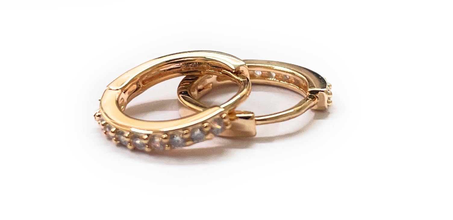 Pendientes de aro dorado de 15 mm de diámetro con sección semicirconitas blancas con cierre de presión de acero, Medio, Acero inoxidable, Acero.