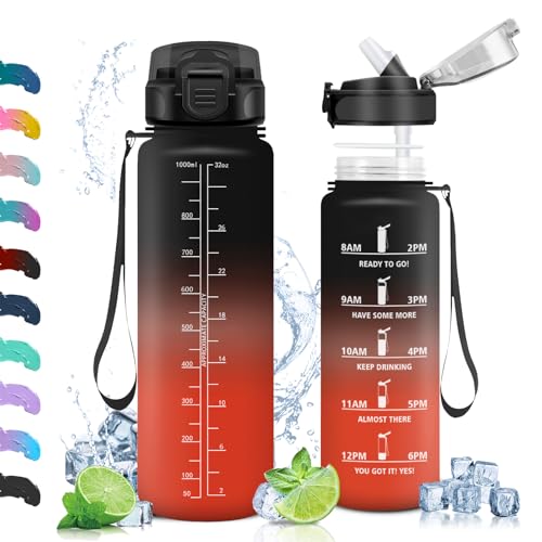 Vikaster Botella, 1000ml Botella con Pajita, Botellas Agua sin BPA, a Prueba de Fugas, Fácil de Abrir, Botella Reutilizable, Gimnasio, Niños, Adulto, Bicicleta, Running