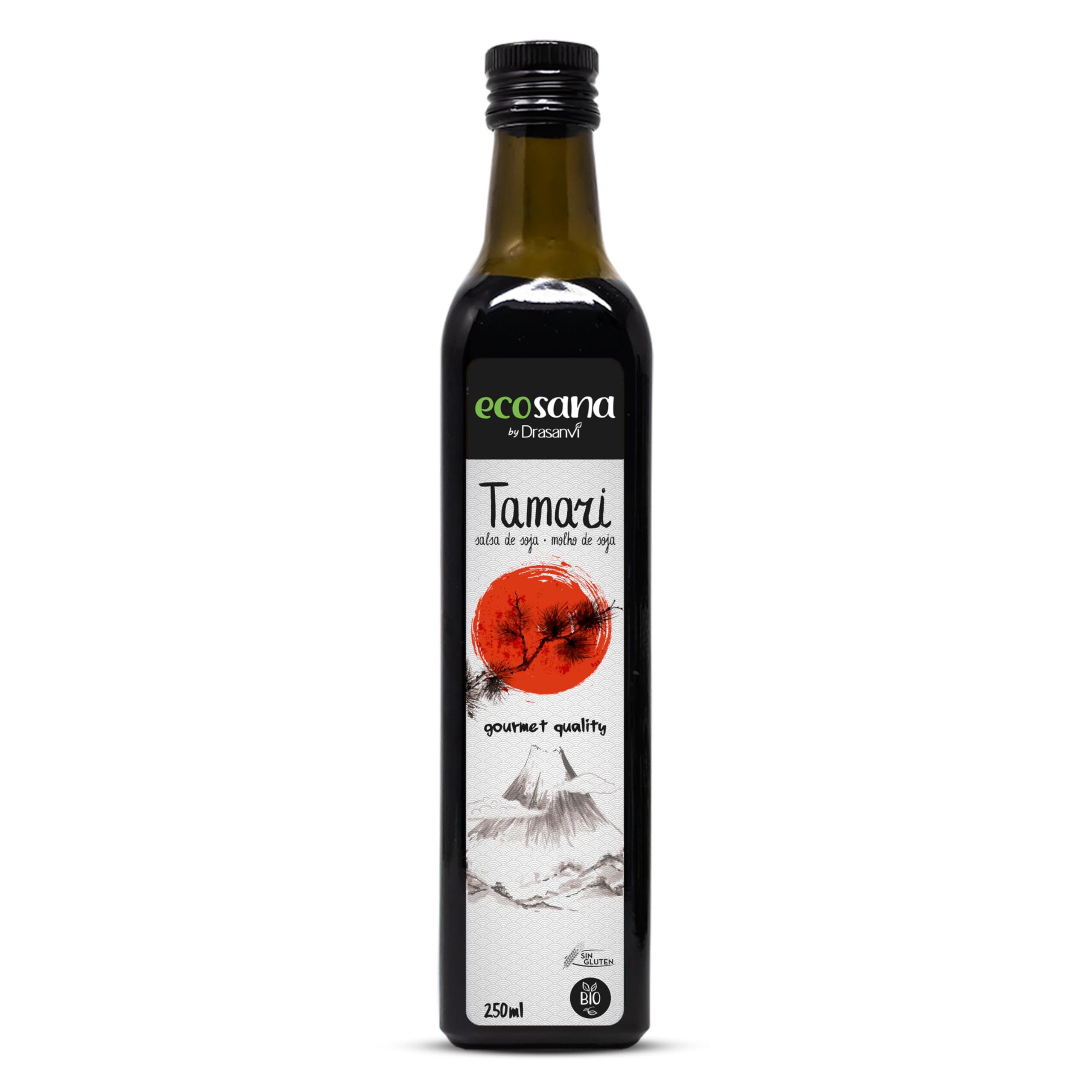 ECOSANA SALSA DE SOJA TAMARI CERTIFICADO BIO by DRASANVI – A partir de habas de soja de cultivo ECOLÓGICO – VEGANO – SIN GLUTEN – 250ml