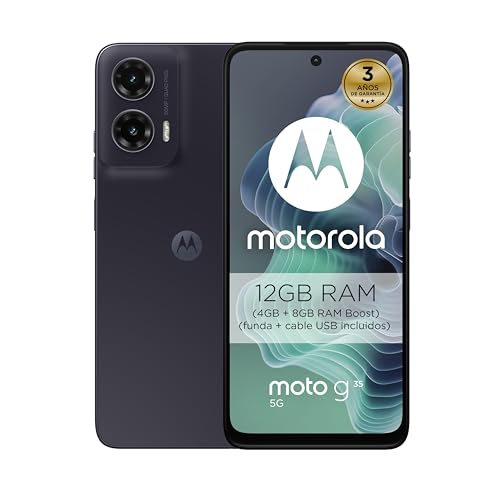 Motorola Moto g35 5G, 12GB (4GB+8GB RAM Boost)/128GB Gris, Pantalla FHD+ 6.72″, cámara Dual de 50MP y Ultra Gran Angular, Selfie 16MB, batería 5000 mAh, Carga rápida de 18W