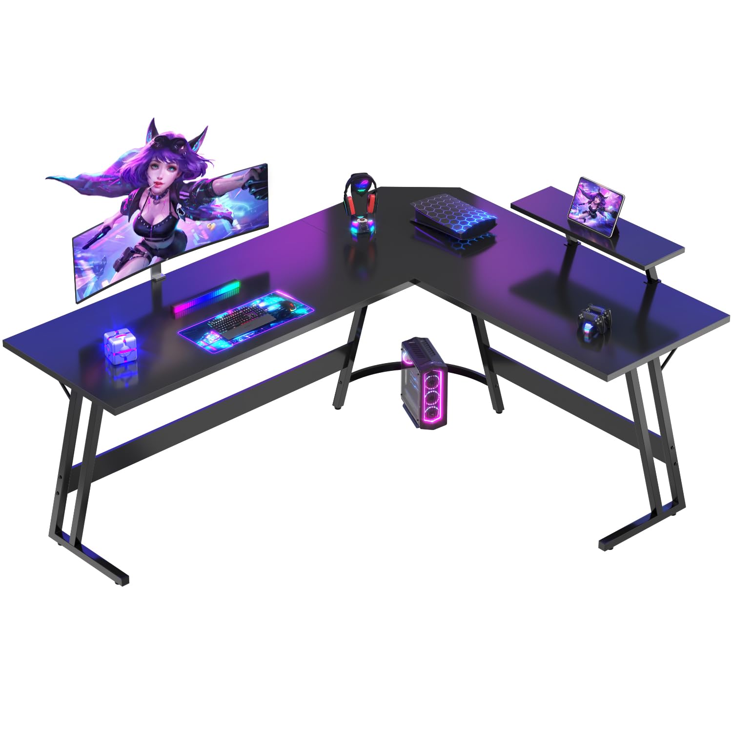 Devoko Escritorio Gaming de Esquina con Soporte para Monitor,170 x 130cm,Escritorio Gamer en Forma de L, para Estudio,Oficina,Gaming,Dormitorio Negro
