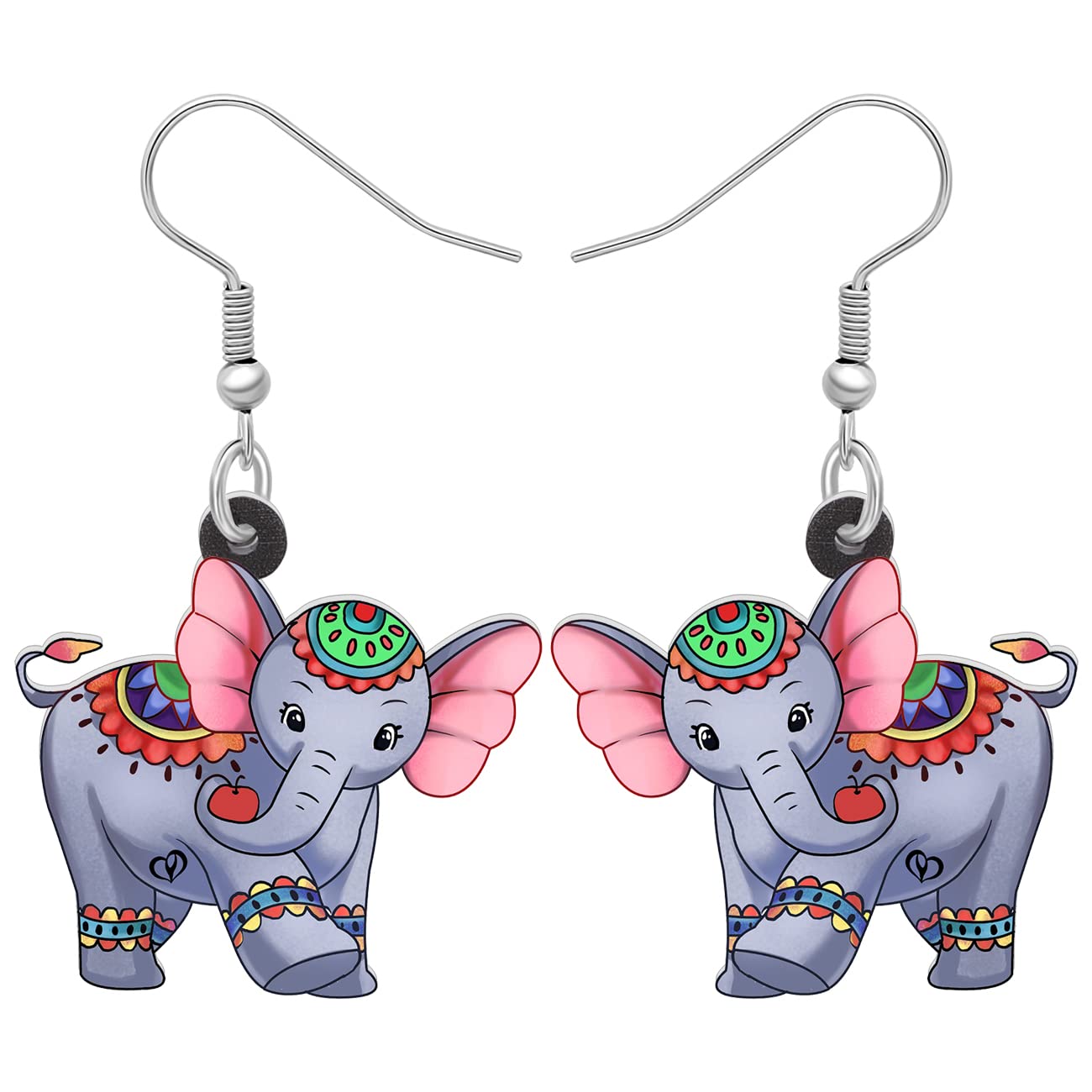 YAYAKO Acrylic Cute Elephant Earrings Dangle Jewellery Anime Novelty Gifts for Women Girls Charms Accessories