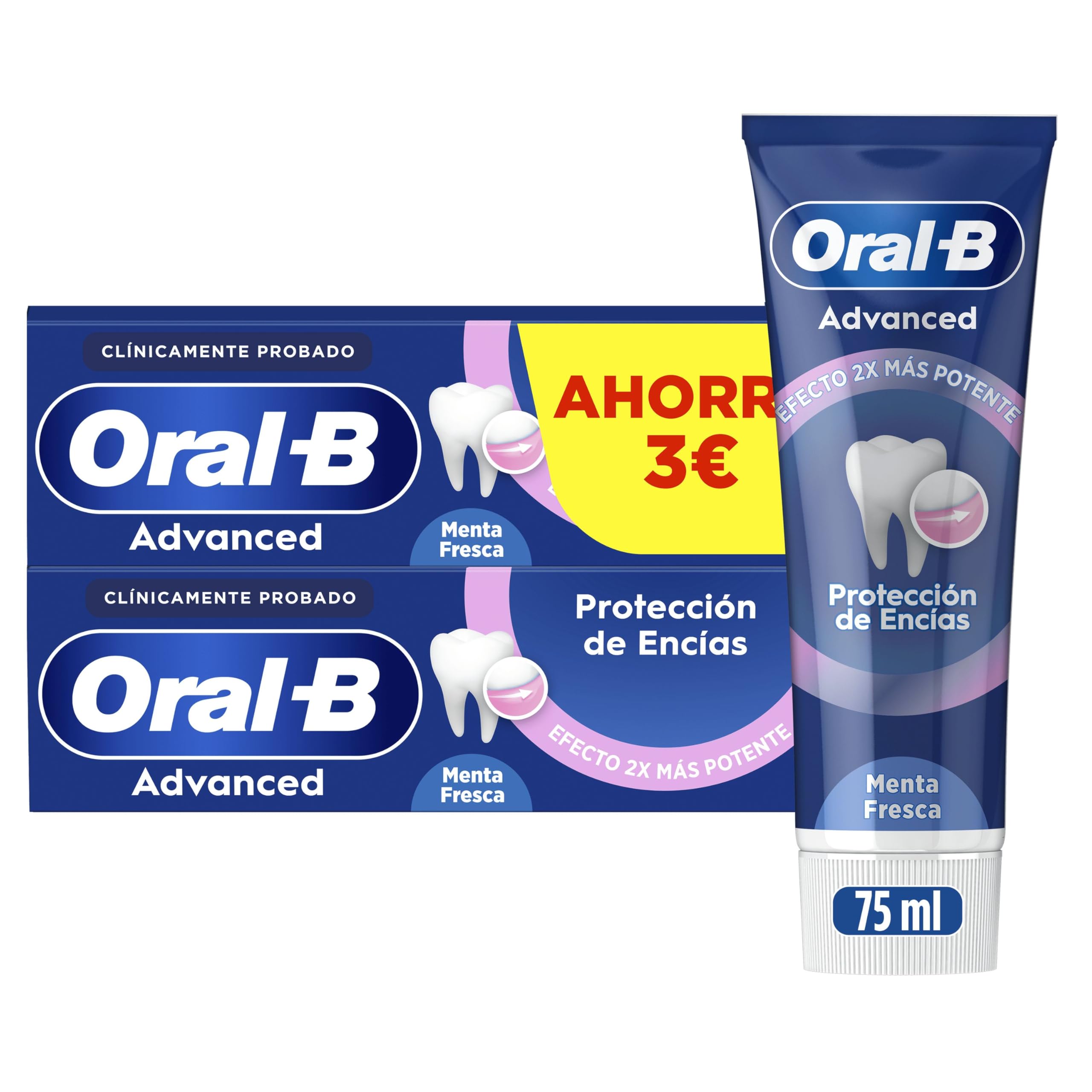 Oral-B Advanced Protección De Encías Pasta De Dientes Con Flúor, Pack 2 x 75 ml, Dentífrico Que Protege Contra La Placa, Cuidado De Encías, Sabor Menta Fresca, 75 ml (Paquete de 2)