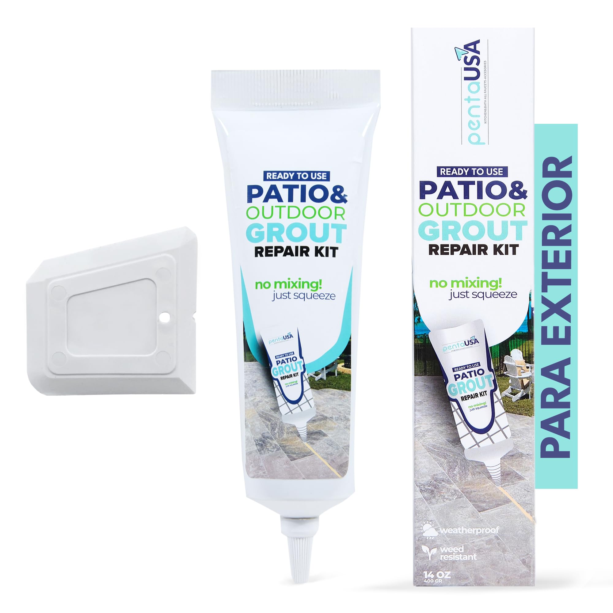 PentaUSA Blanqueador de Juntas – Juntas Azulejos, Kit de Reparación de Juntas, Reparación de Escapadas, Lechada Tubo, Reparación y Renovación, Mortero Azulejos – Con Espatula – 400g (Para Exterior)
