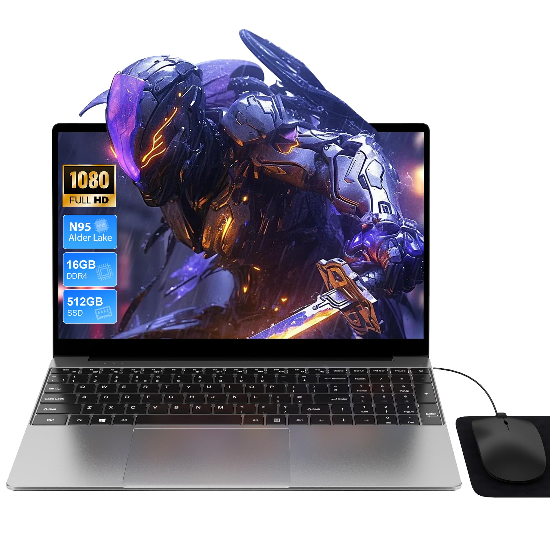 Portátil 15,6 Pulgadas, 16GB RAM+512GB SSD, CPU N95, Teclado Iluminado/Teclado Numérico, Win11 PC Portatil, 5G WiFi, Carga tipo C, Ordenador Portátil para Trabajo en oficina, Estudios y Uso Doméstico