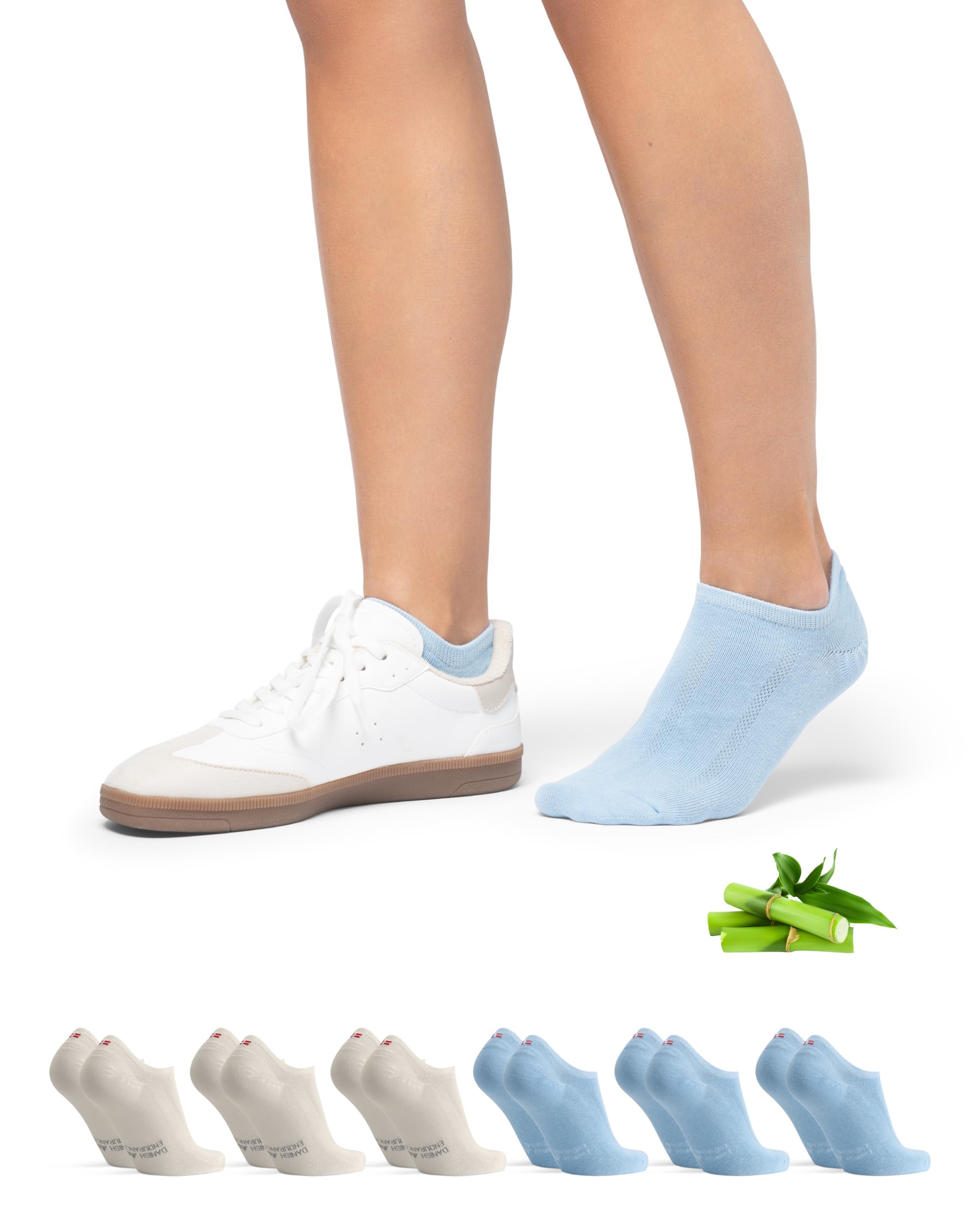 DANISH ENDURANCE Pinkies en Bambú, Transpirables, Calcetines Invisibles Mujer y Hombre, 6 Pack
