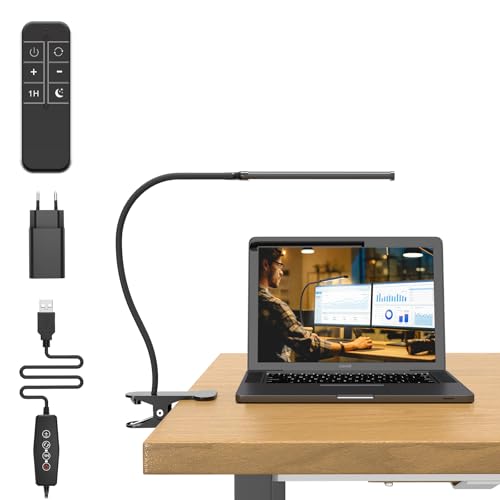 Mojimdo 77 LED Lámpara de Escritorio Regulable con Mando a Distancia [3 Modos de Color y 10 Niveles de Brillo] Cuello de Cisne Flexible de 40CM con Adaptador USB, Flexos de Pinza para Hogar