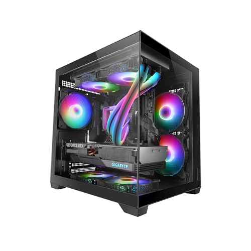 Mars Gaming MC-VIEW2, Caja Gaming MicroATX, Doble Cristal Templado Continuo Sin Marco, 1x Ventilador FRGB Trasero 120mm, Soporte Refrigeración Líquida hasta 240mm, Estructura de Doble Cámara, Negro