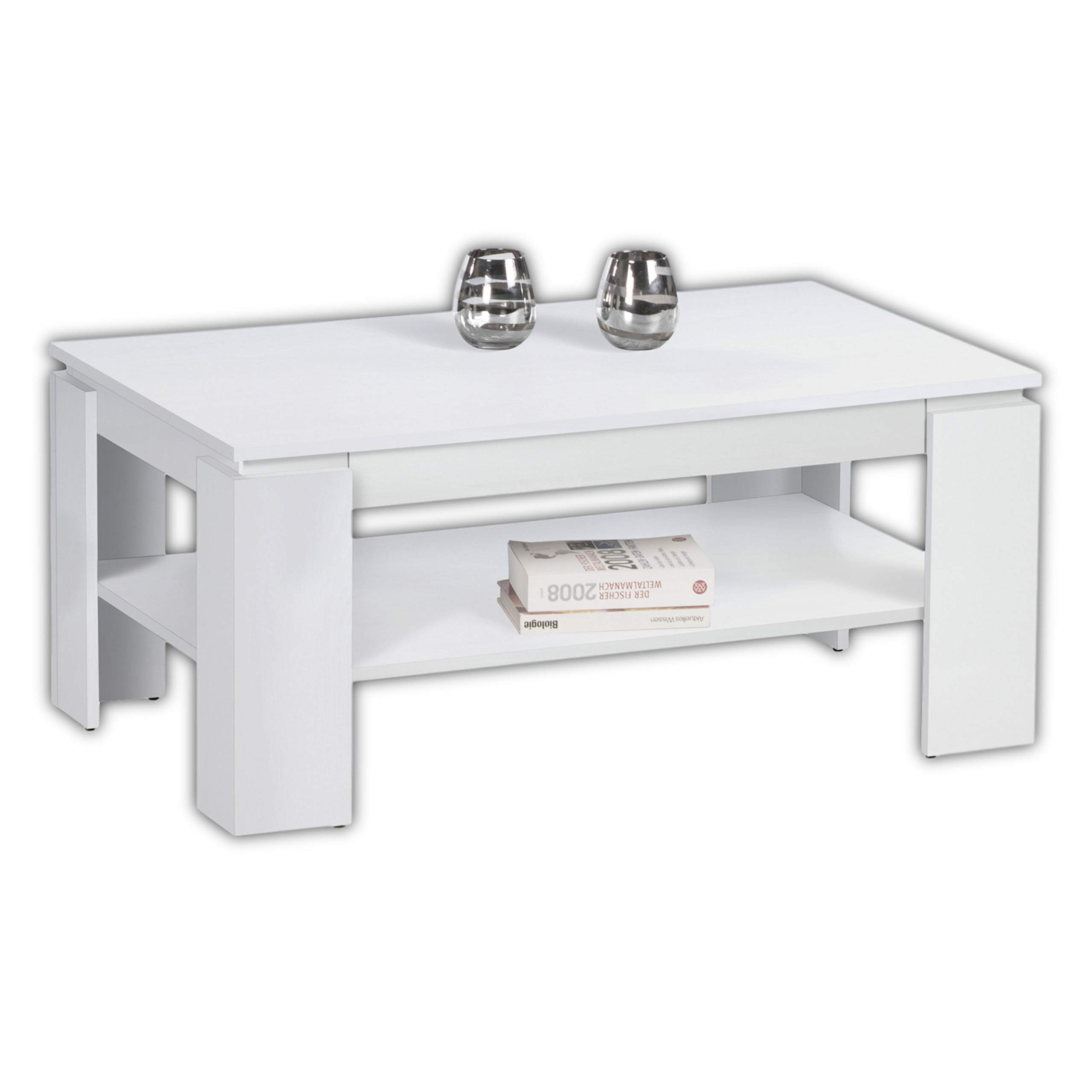 Stella Trading Harrison Centro con cajón, Color Blanco-Mesa de sofá espaciosa con Estante para su salón, Madera de ingeniería, 100 x 44 x 60 cm