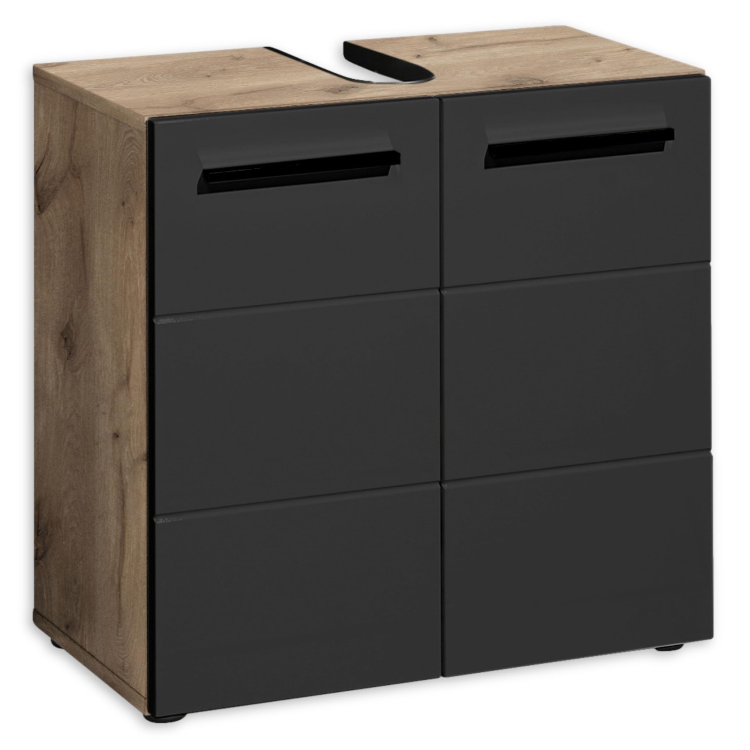 Stella Trading Vista-Armario bajo Lavabo para baño con Mucho Espacio de Almacenamiento, Color Negro, Madera de ingeniería Plástico, Waschbeckenunterschrank