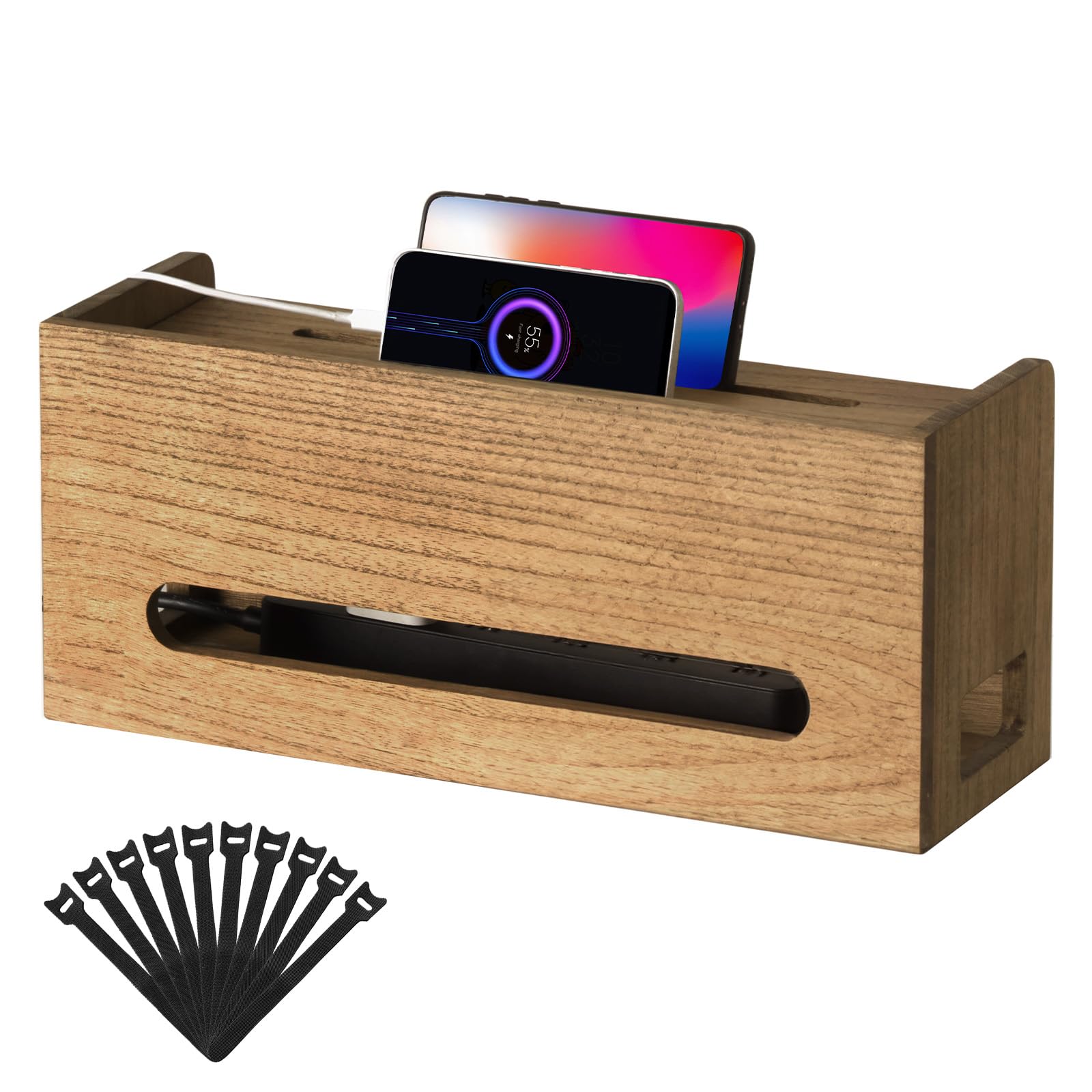 KIRIGEN Caja Organizadora de Cables – Organizador Seguro con Acabado en Aceite Vegetal, Diseño Elegante para Ordenar Cables en Casa u Oficina color marrón