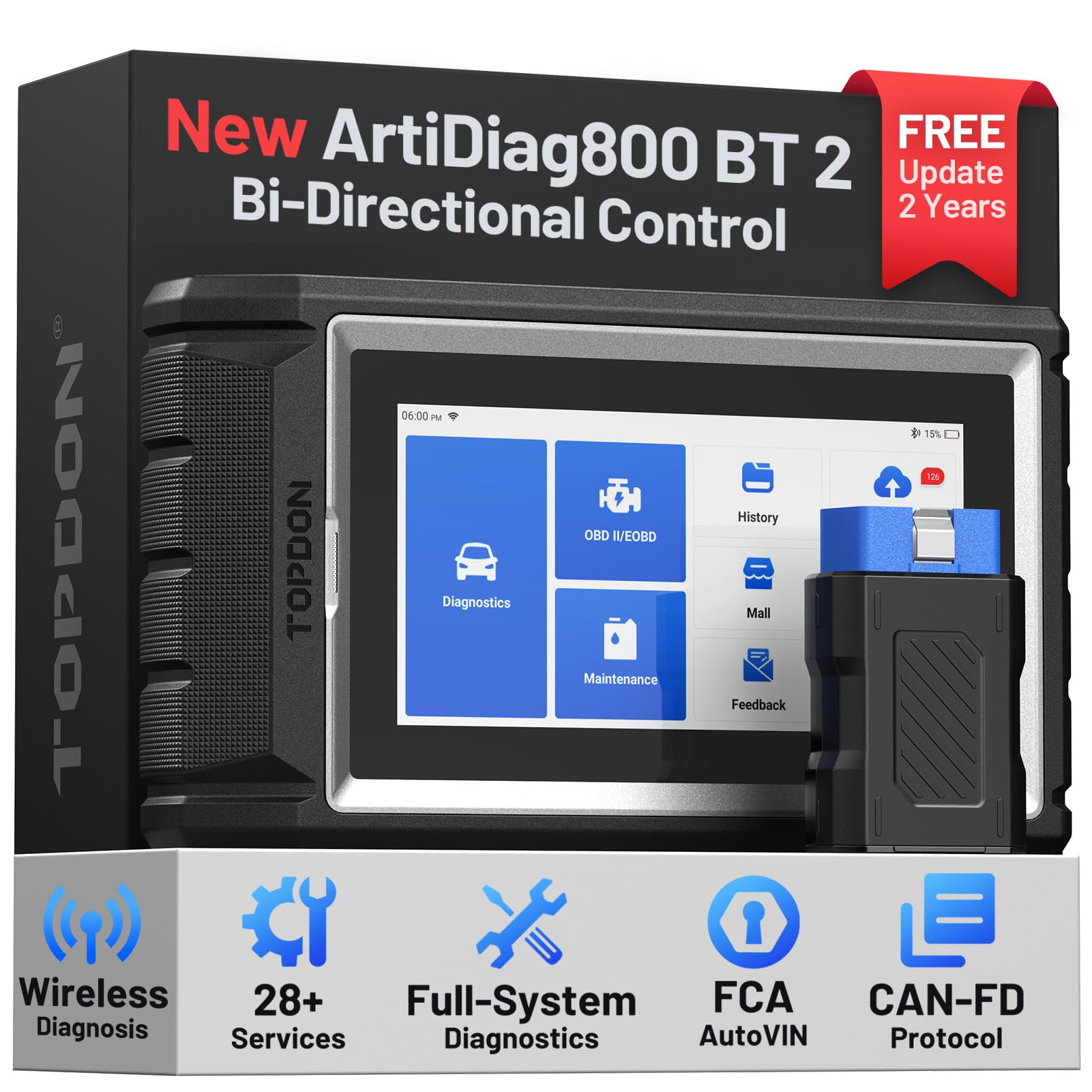 TOPDON ArtiDiag800 BT 2, Herramienta de diagnóstico de Todos los Sistemas, más de 28 Funciones de Mantenimiento, Acceso a la Puerta de Enlace FCA y protocolo Can-FD, diagnóstico inalámbrico Bluetooth