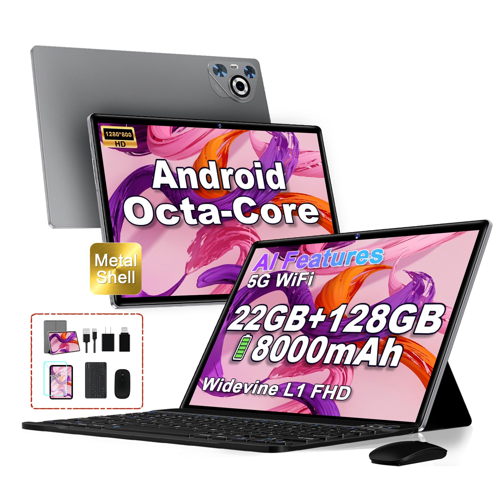 2025 Newest Tablet 10 pollici Android 14, 22GB RAM 128GB ROM/TF 1TB, Octa-Core, 8000mAh, Corpo in Metallo, Face ID, Doppio WiFi, 8MP+5MP, Widevine L1, Protezione Occhi, Tastiera, Mouse, Gary