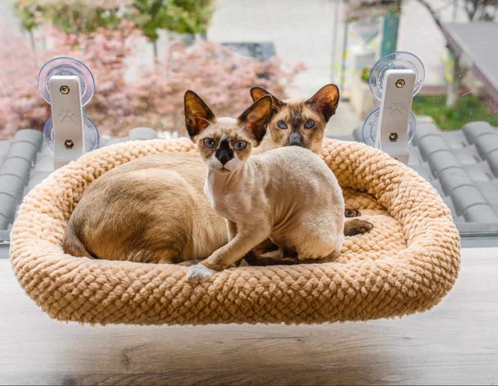 Cama para Gatos Ventana – Hamaca Ventana Gato con Plegable, 4 Ventosas y Cojín Extraíble Soporta 18kg