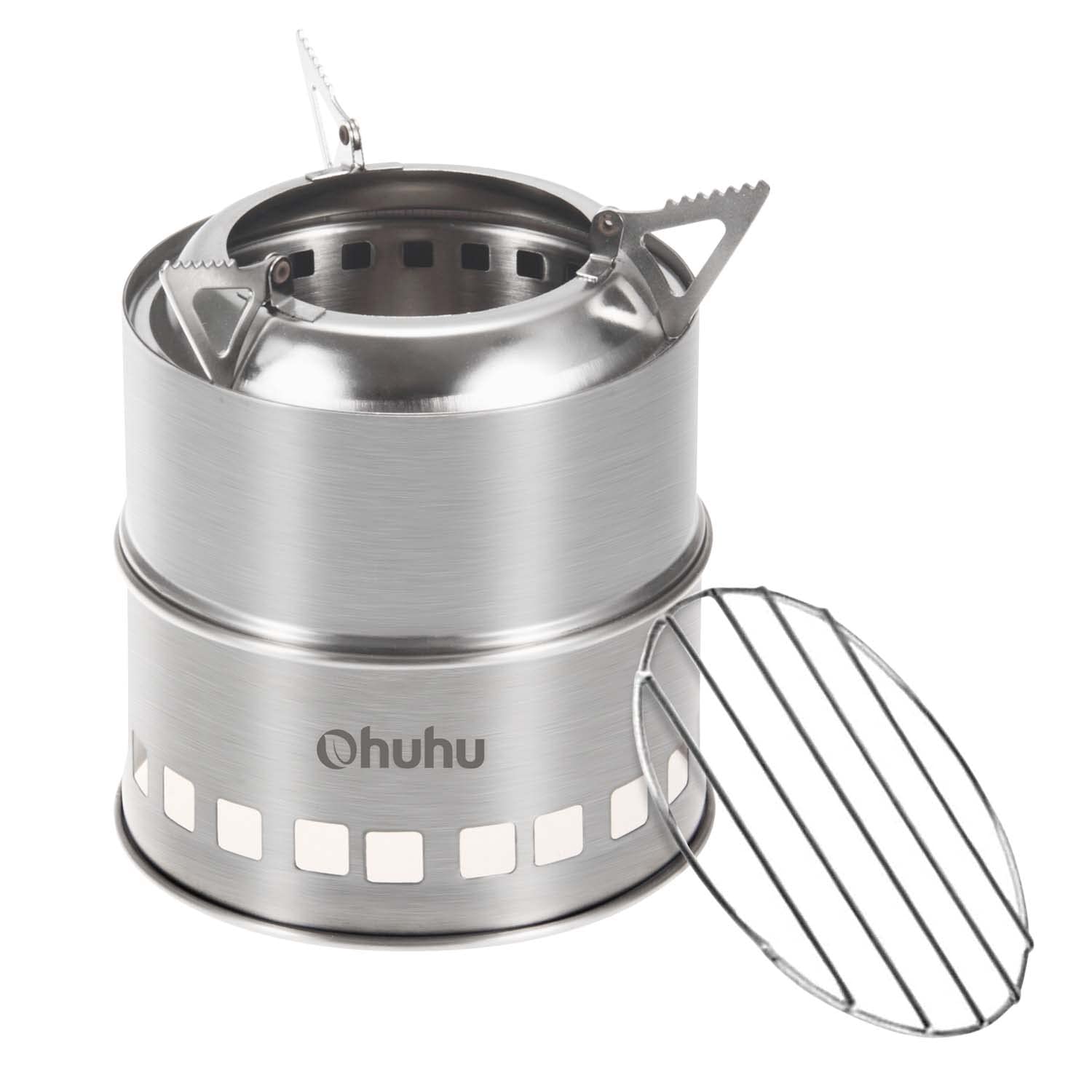 Hornillo de acampada Ohuhu, hornillo portátil de acero inoxidable para mochileros, estufa de leña con parrilla para pícnic, barbacoa, acampada, senderismo