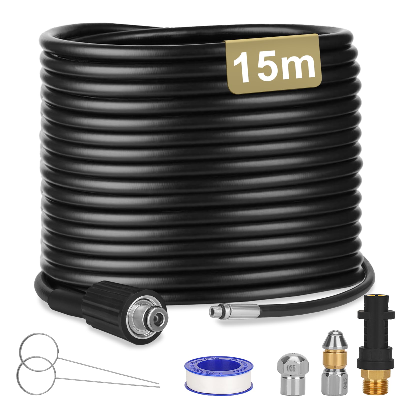 Ajiteogy Desatascador de Tuberías a Presión 15M, compatible con Kärcher y las series de alta presión Kärcher K2-K7, Kit de Manguera para Limpieza de Tuberías