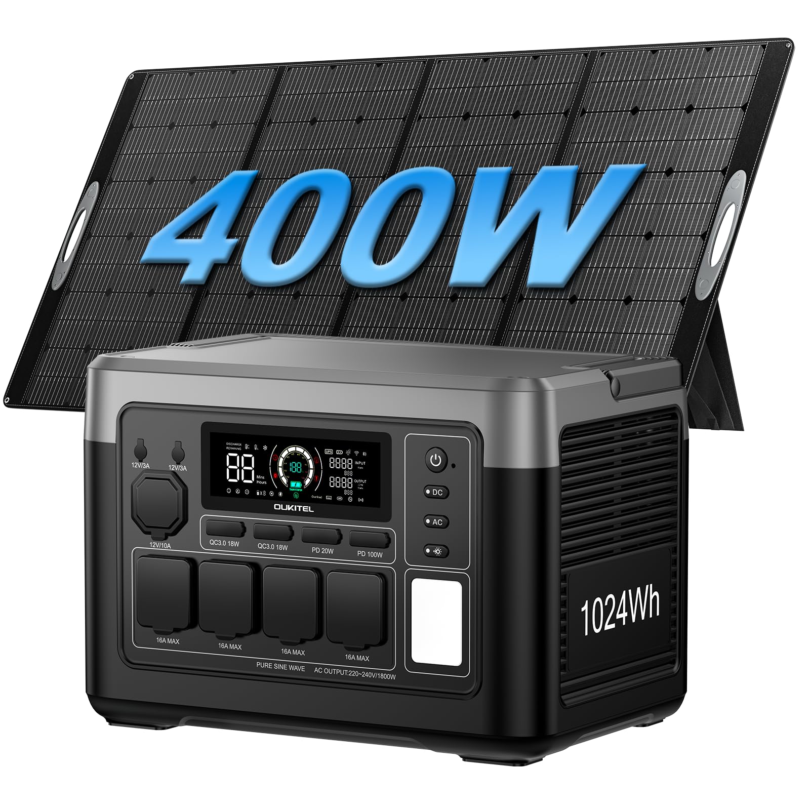 OUKITEL P1000E PLUS Portable Power Station with 400W Foldable Solar Panel,1024Wh LiFePO4,Solar Generator with 4 AC Plug,1800W,with UPS and App,Fast Charging in 1 Hour,for Camping,Emergencies