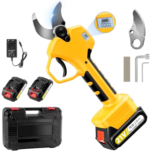 Tijeras de Podar Electricas, Apertura Máxima de La Hoja 40-50 mm, 2*2Ah Batería Sk7 cuchilla, 2 Tamaños de Apertura con Monitor, Tijeras de Podar con Motor Brushless para Jardinería,Árboles Frutales