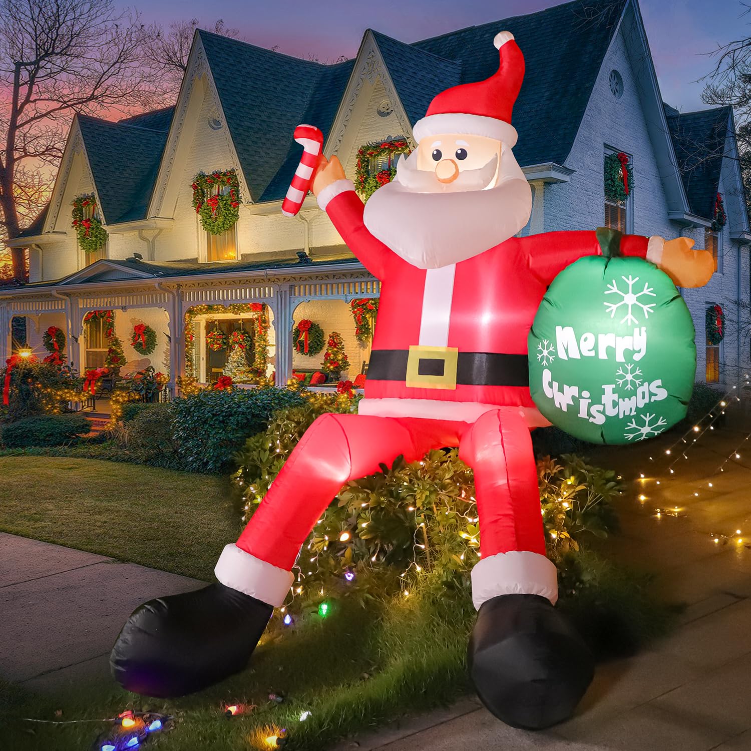 Alampia 8FT Papá Noel Inflable, 240CM Decoración Navidad con Ventilador de Luz LED, IP44 Resistente Intemperie, Decoración Hinchable de Invierno, Jardín, Césped, Patio