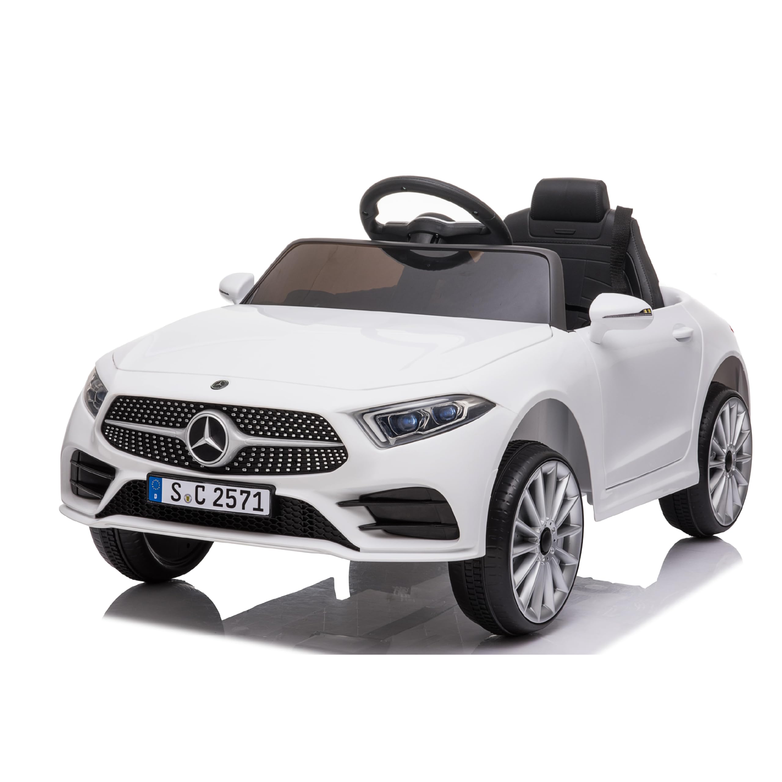 Baroni Toys Coche Bebé Mercedes AMG Eléctrico Completo Opcional Blanco, Coche Mando a Distancia con Asiento de Cuero y Puertas Que se Abren, Motor Dual 6V, Carga hasta 25 Kg (Blanco)