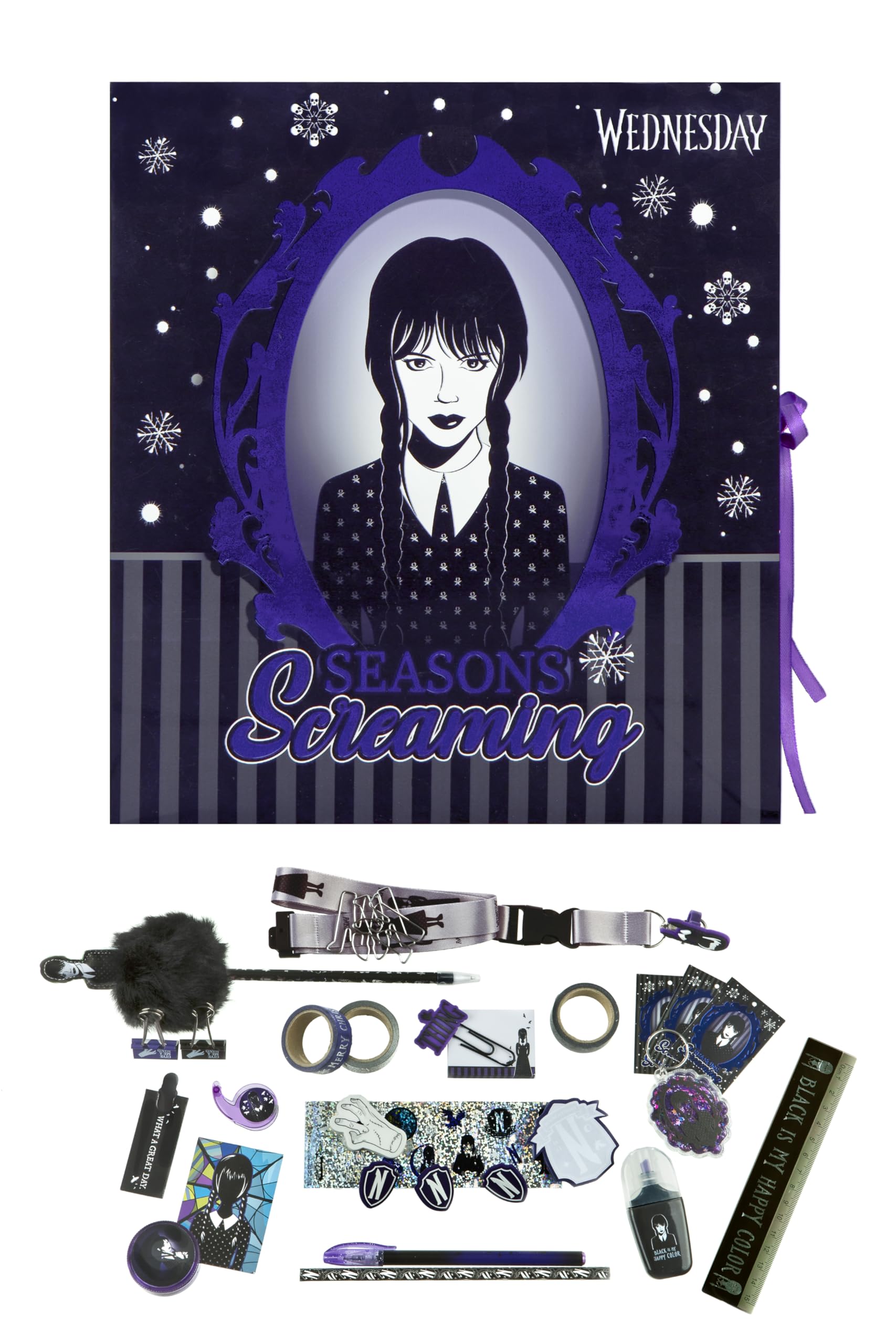 Undercover – Calendario de Adviento Wednesday – Caja plegable con lazo – 24 sorpresas creativas – Materiales de manualidades y papelería – Artículos de regalo