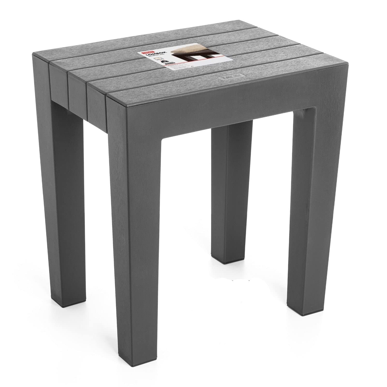 Tatay Banqueta Lombok Rectangular, de Polipropileno, Libre de BPA, Acabado Efecto Madera, Protección Anti-UVA, hasta 130KG, Apta para Interiores y Exteriores, Color Gris. Medidas 38x29x41 cm