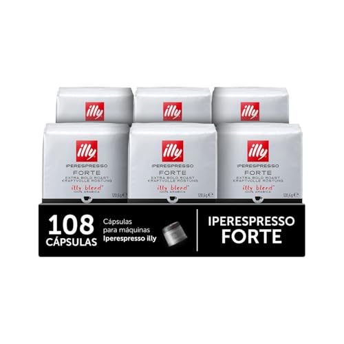 illy, Cápsulas de Café Iperespresso FORTE, 100% Arábica con un Intenso Aroma a Pan Tostado y un Sabor Final a Chocolate Negro, Sabor Fuerte, 6 Paquetes de 18 Unidades (108 Cápsulas)