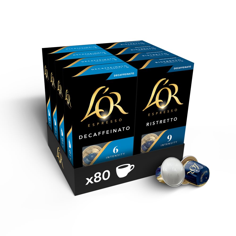 L’OR Espresso Descafeinado Surtido de Cápsulas de Café 2 sabores | Intensidades 6 a 9 | 80 Cápsulas Compatibles Nespresso (R)*