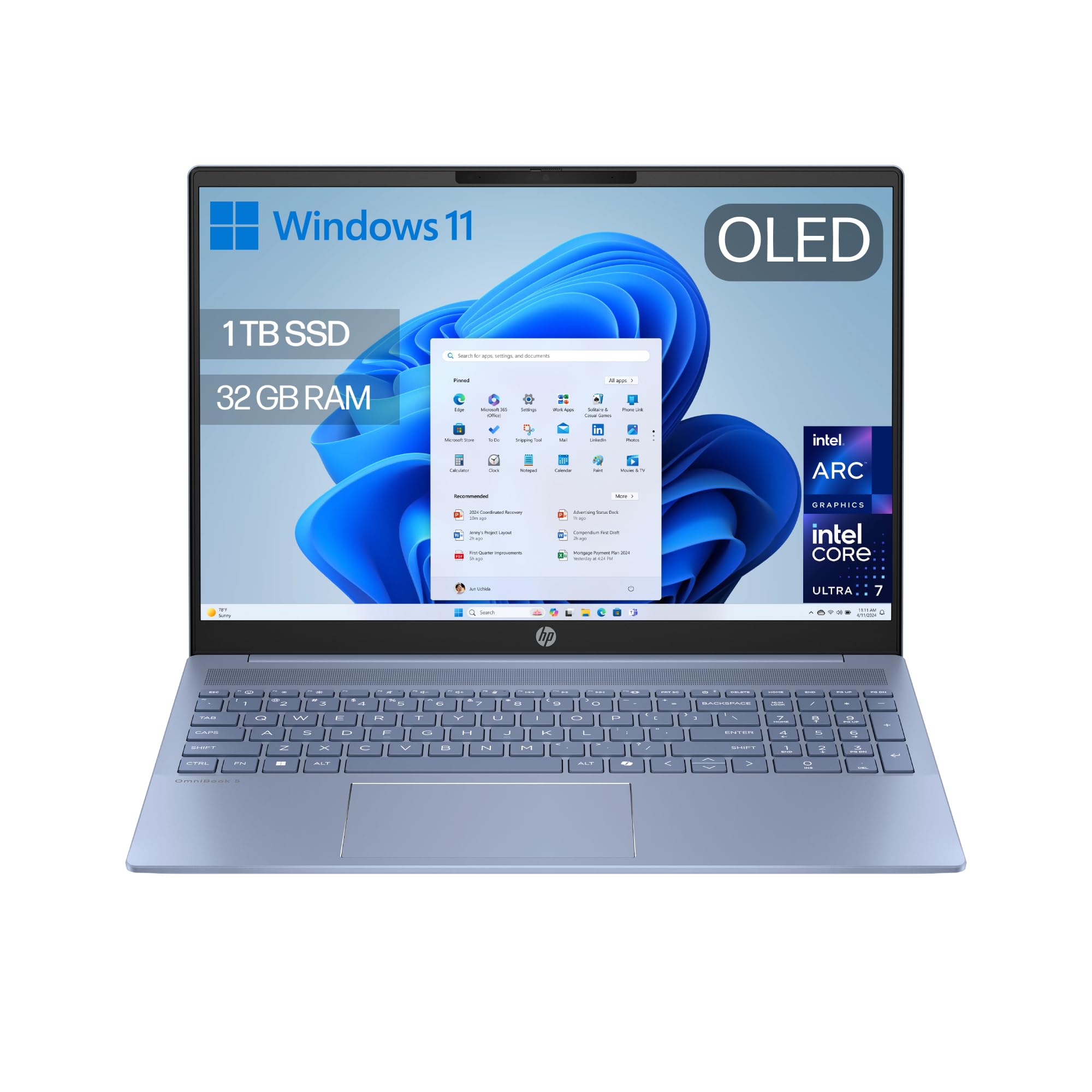 HP OmniBook 5 AI 16″ OLED 2K, Ordenador Portátil Intel Core Ultra 7-255U, 32GB RAM, 1TB SSD, Gráficos Intel, Windows 11 Home, Wi-Fi 6, Azul – Teclado QWERTY Español
