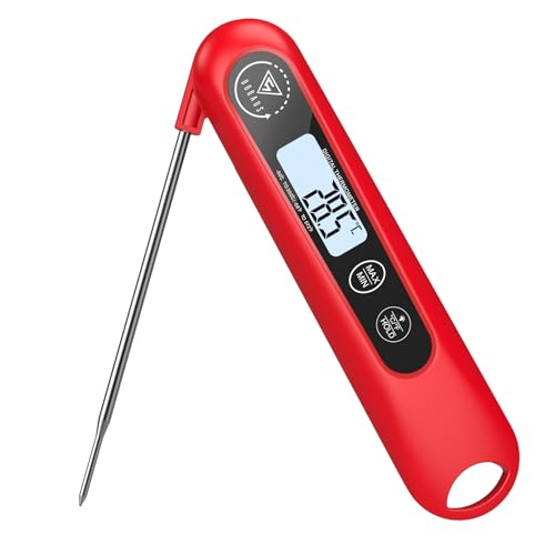DOQAUS Termometro Cocina Digital de Lectura Instantánea de 3s, Termómetro Alimentos con Plegable Sonda Larga, Termometro Carne con Pantalla LCD para Carne, BBQ, Comida, Liquidos, Aceite, Agua(Rojo)