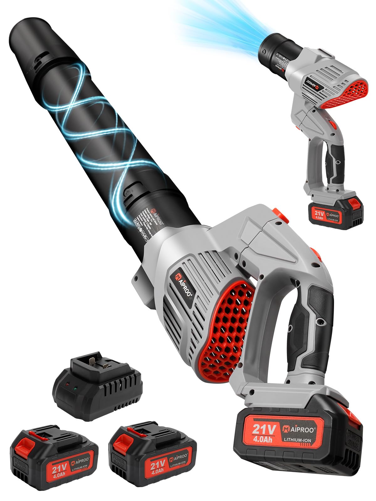 Soplador de Hojas inalámbrico con Modo Turbo,1189m³/h,21V,5 Marchas con 2 baterías de 4.0Ah y Cargador, Aspiradora Ligera con rotación de 180°para césped, Patio, Garaje, soplador de Hojas y Polvo