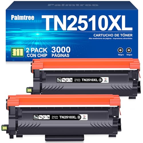 Palmtree TN2510 TN2510XL TN-2510 XL Compatible para Brother HL-L2400DWE Toner HL-L2445DW DCP-L2620DW MFC-L2800DW DCP-L2665DW DCP-L2660DW MFC-L2827DWXL DCP-L2627DWE MFC-L2860DW MFC-L2835DW (2 Negro)