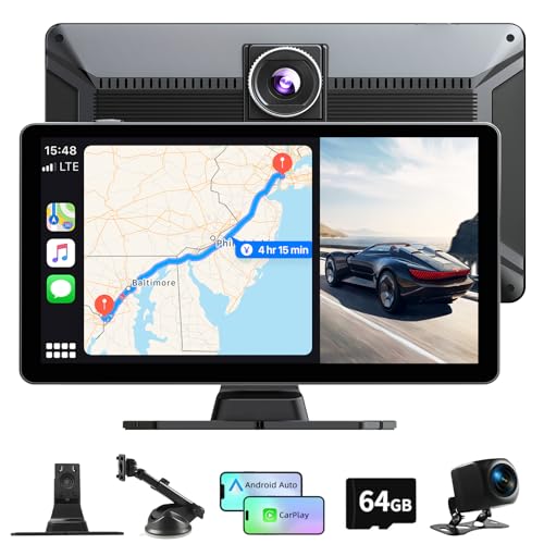 Tallflly Radio Coche Bluetooth de Carplay Android Auto Inalambrico, 9 Pulgadas Pantalla Coche con Dashcam 4K/Cámara Trasera HD 1080P/FM/AUX/64G TF/Mirror Link/Control por Voz/Navegación GPS