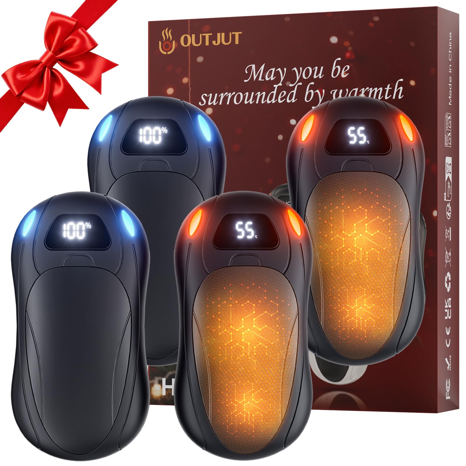 OUTJUT Calentador de Manos Recargable con Visualización en Pantalla,Calentador de Manos Portátil Reutilizable de 12000 mAh Diseño Magnético,3 Niveles de Calor para Exteriores,Esquí,Camping
