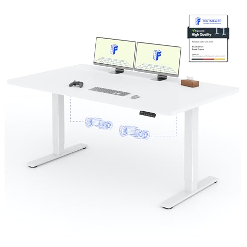 FLEXISPOT 2 Motor Escritorio Elevable Eléctrico 160×80 con Una Tabla de Mesa Completa, Mesa de Elevable con Panel de Memoria, Escritorio Eléctrico Regulable en Altura, 100KG de Carga, Blanco+Blanco
