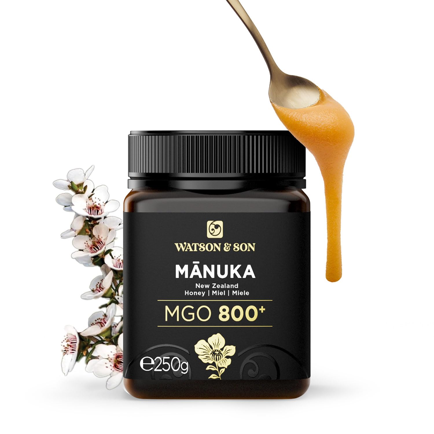 Watson & Son Miel de Manuka Pura MGO 800+ (250g) – Miel Cruda sin Filtrar de Nueva Zelanda, Natural sin Pasteurizar