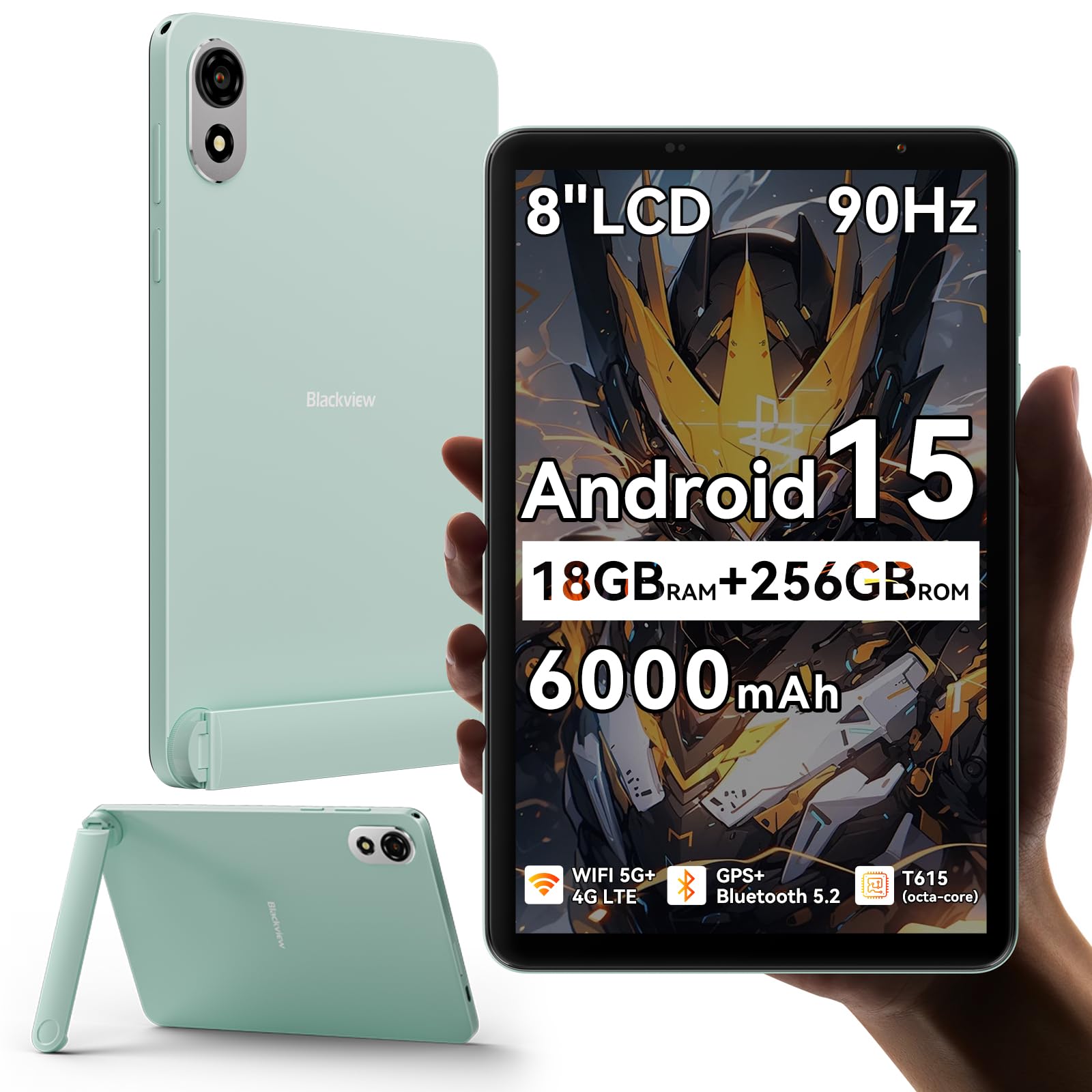 Blackview ZENO 1 8 Pulgadas Tablet Android 15 90Hz 800×1280-Ultra Ligera y Compacta Gaming,T615 8 Núcleos Chip AI,18GB RAM+256GB ROM 2TB TF/4G LTE+WiFi 5G/Face ID/6000mAh/8MP+8MP/Widevine L1/BT5.2/GMS